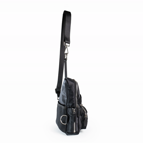 Say hello to the City Sling in Black, your ultimate on-the-move bag! 🚀 Perfect for everyday tasks and exciting adventures, it features a spacious main compartment with a handy interior zippered pocket. Easily grab your phone from the front slip pocket, and keep your belongings secure in the two front zippered pockets. Plus, the hidden side pouch fits a 20oz water bottle, letting you stay carefree and hands-free all day long.