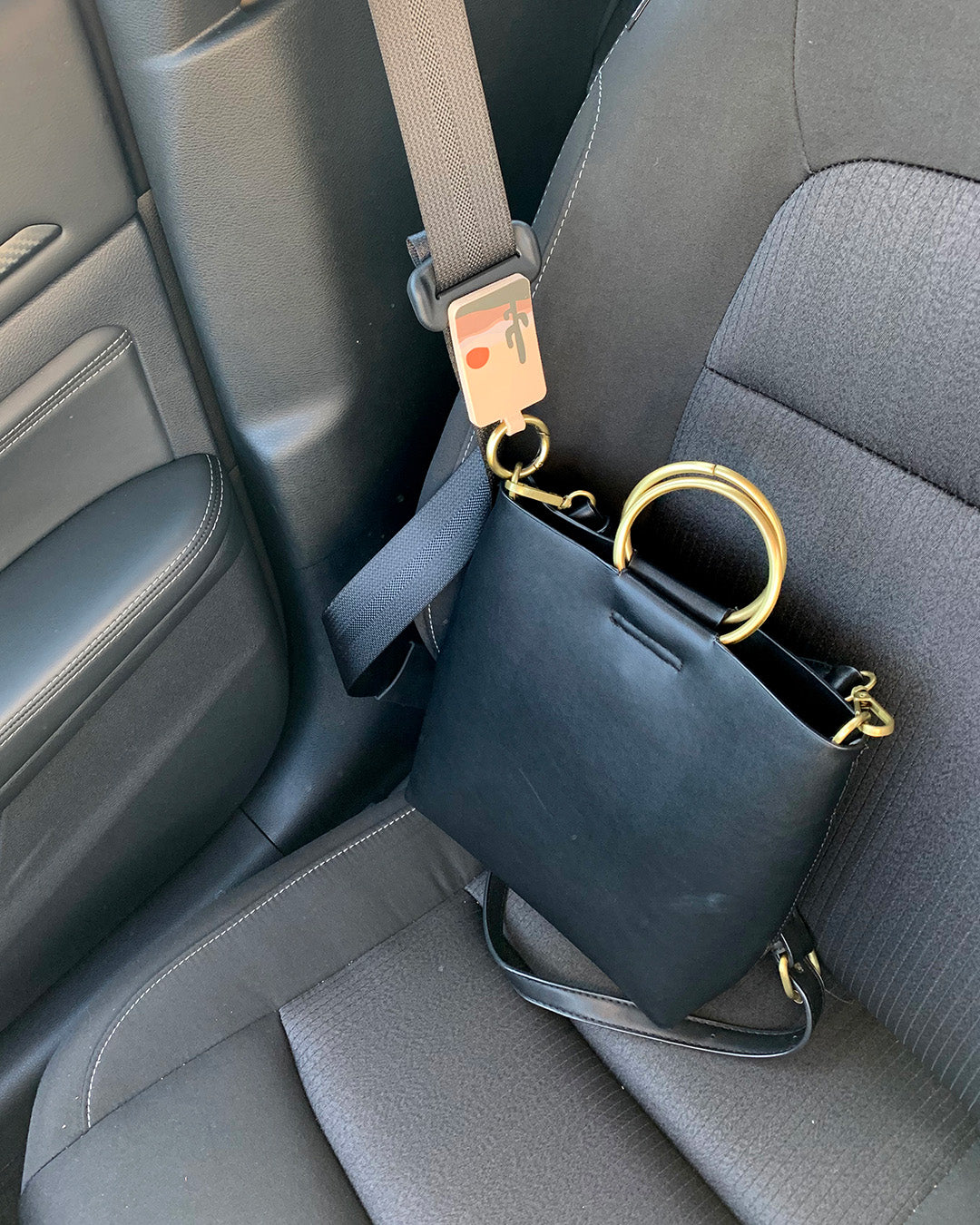 Use Bagnet on the car for hands-free loading, and in the car to keep your purse from flying off the seat!